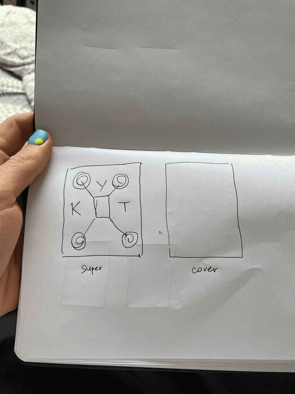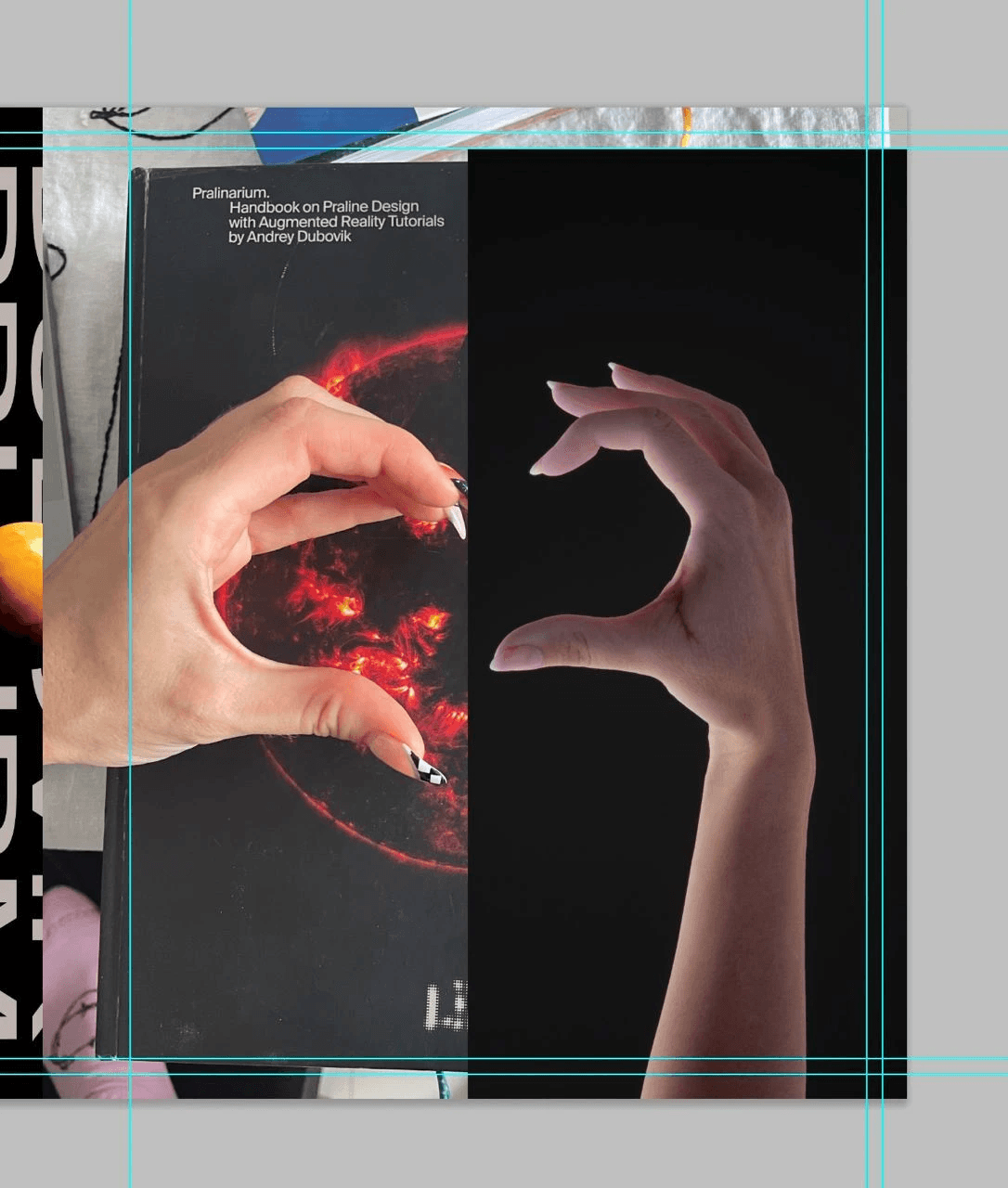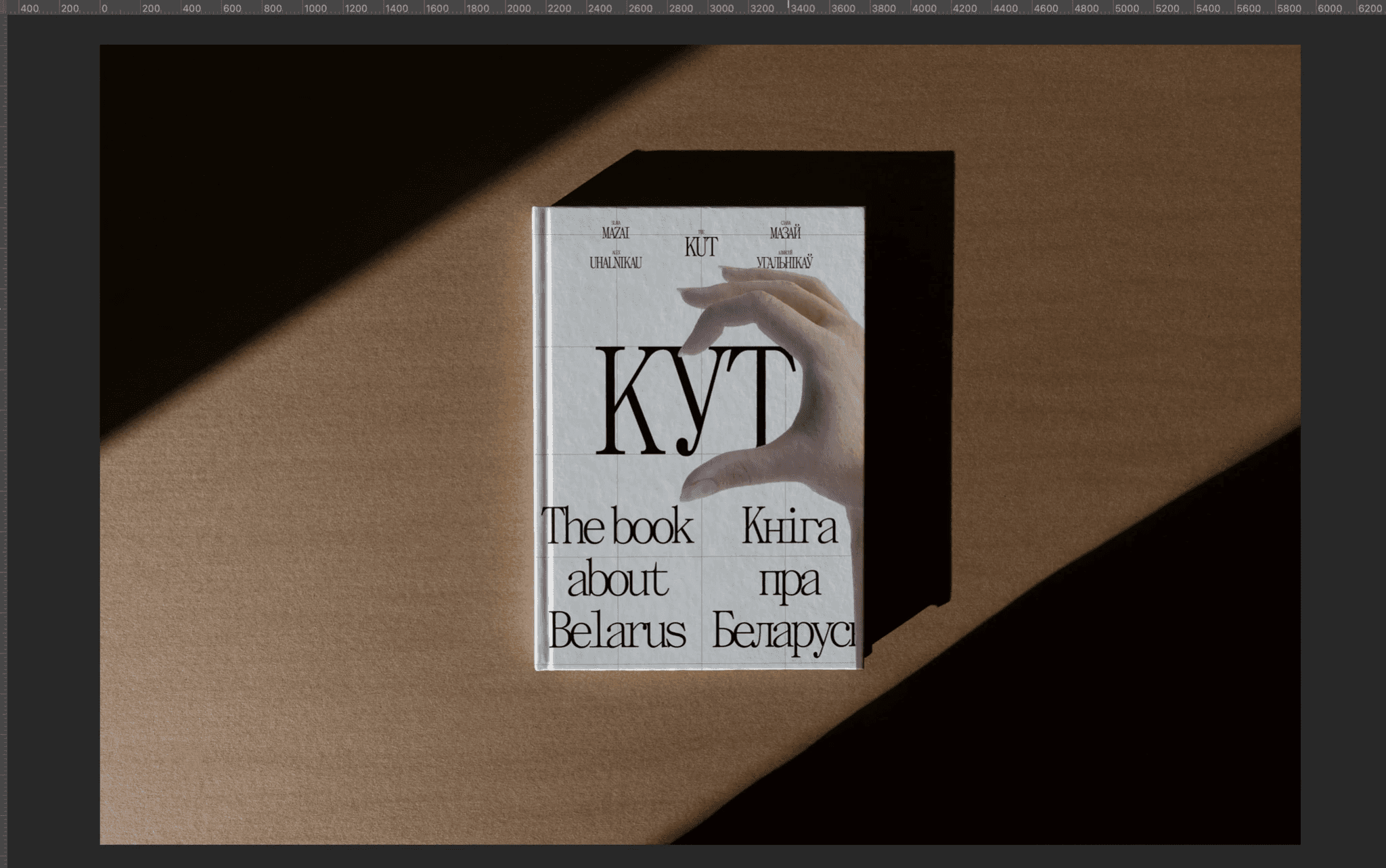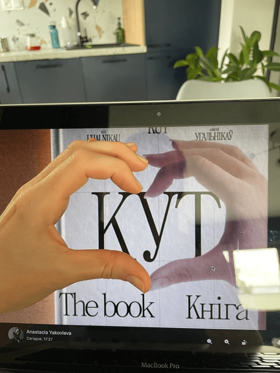 Here's a cover that almost made it to the final cut: making half a hand heart on the cover. The idea was that any person holding the book could put his other hand and get a whole heart. In the heart there would be an outline of Belarus and the inscription "KUT", so that you get "KUT in your heart".