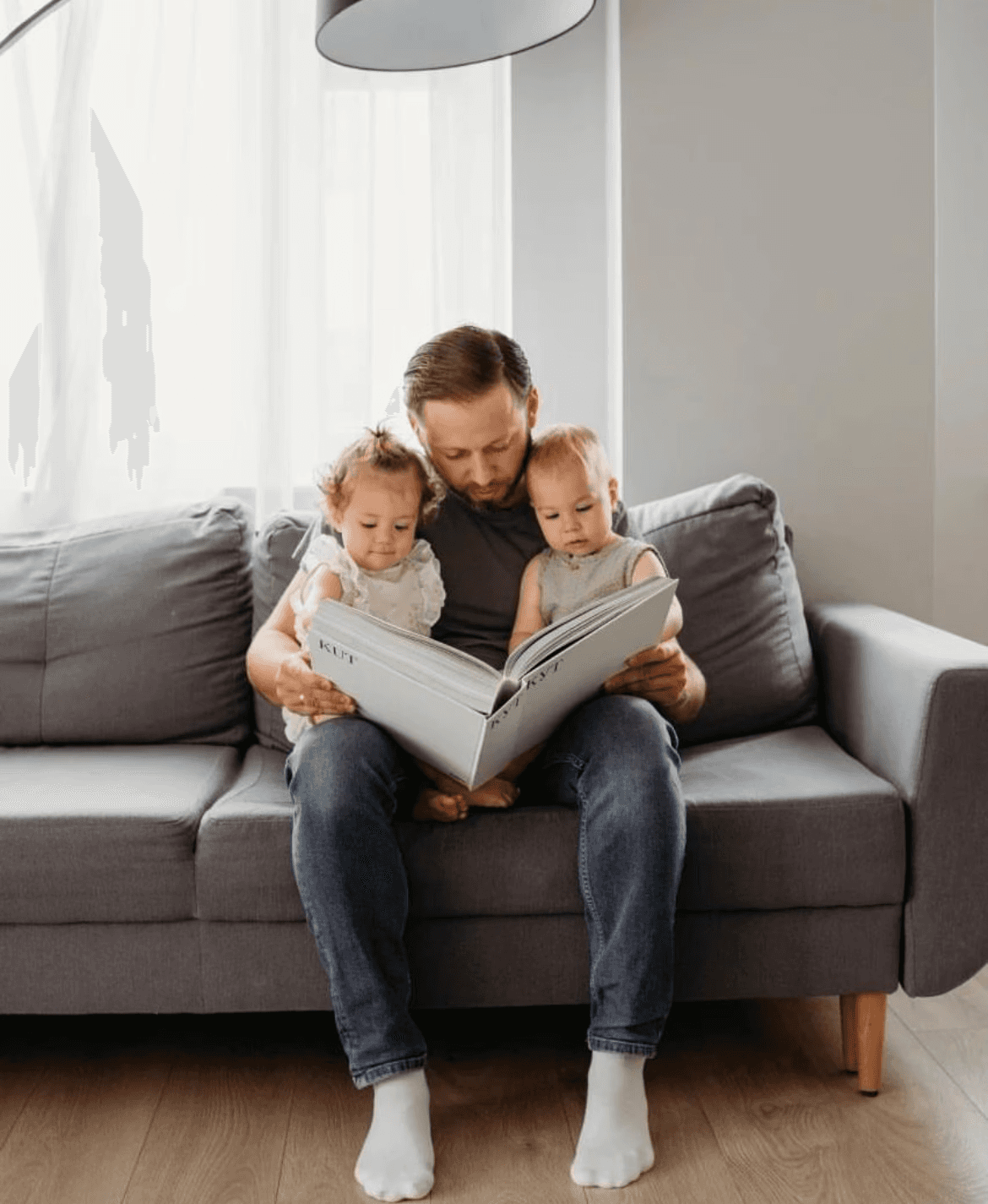 Alex looking through the book with his kids