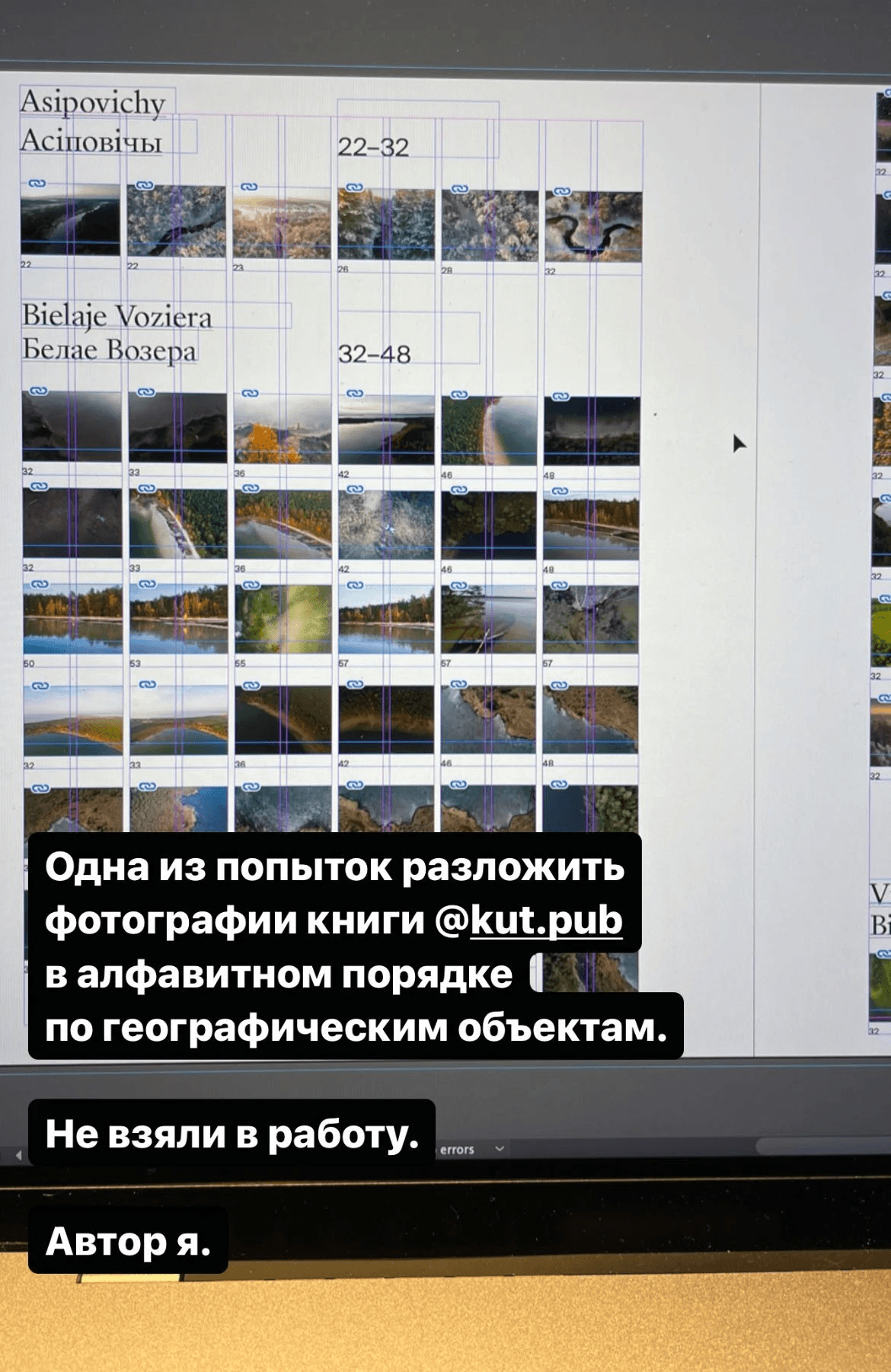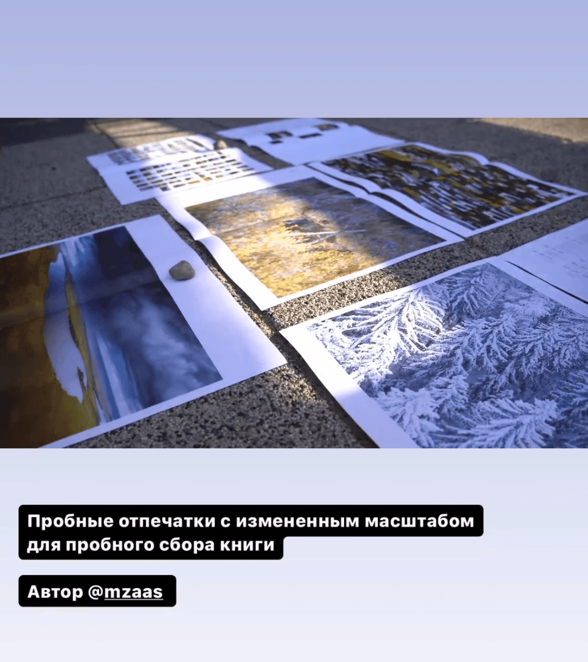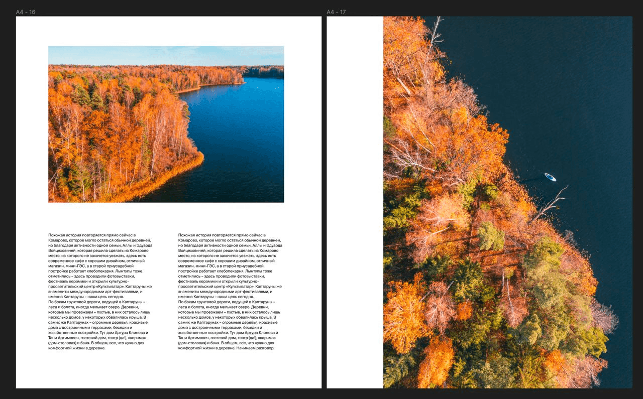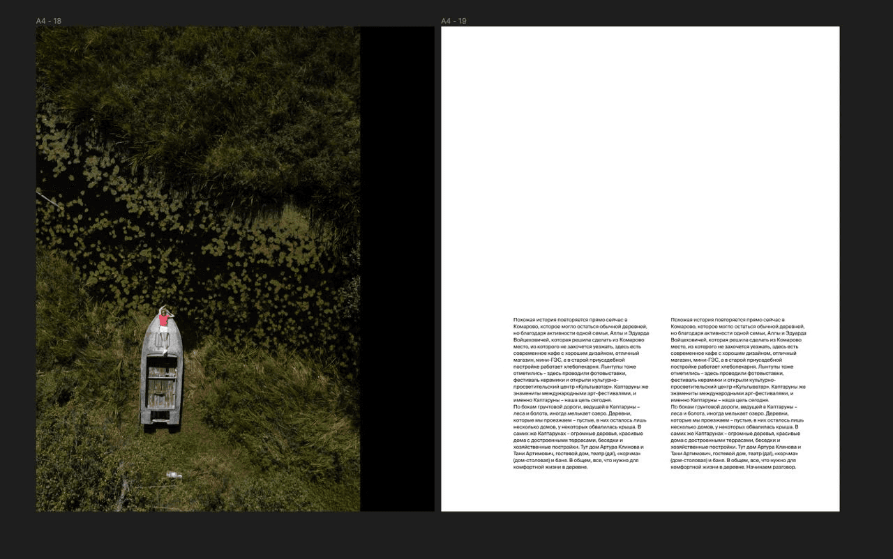 Once we had the book layout almost ready and were finalising details, Slava went to a regular printing centre and printed a few pages of the book on A3 sheets. We folded them in half to get smaller drafts of the future pages of the book. It's hard to say whether this helped us in any way, but we met several times just to lay these sheets out and look over them.