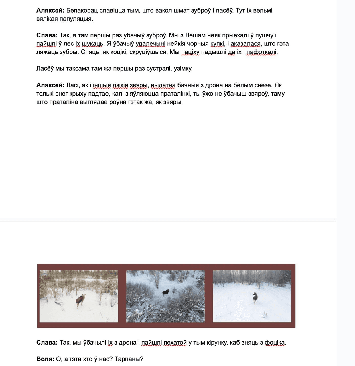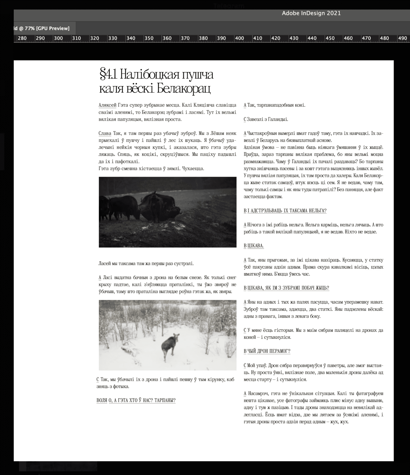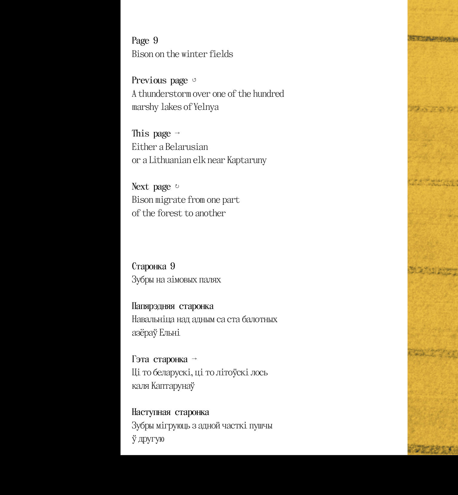 After the pilot version had already been printed, we started to make edits to the final layout. Or, as the proofreader used to say, "catching all the fleas". It took about five iterations so that both texts, Belarusian and English, were identical and sounded good in each language. The last thing that Olya asked me to correct in the final layout, which was at this point practically lying in the inbox of the printers, was the definition of “tarpans” (wild horses).