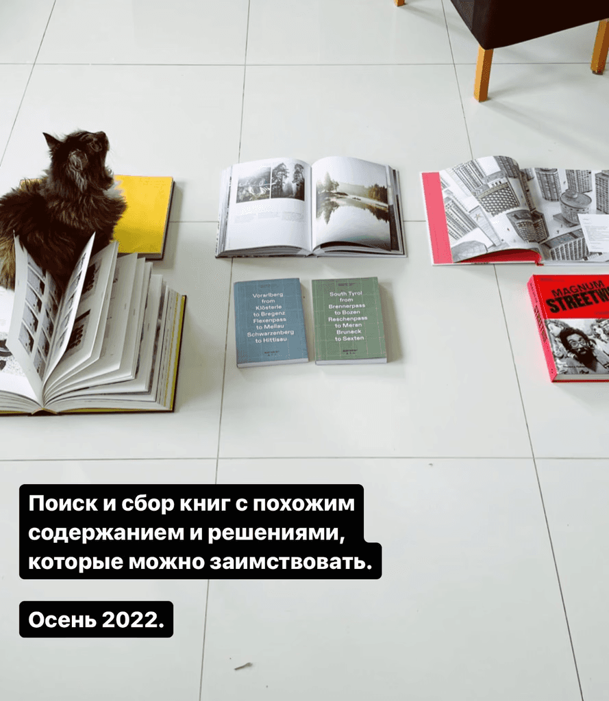 I asked the guys to gather some references in the form of books or other printed materials in an attempt to understand how they see the visual solution of our future book, to understand what they prefer and so on.