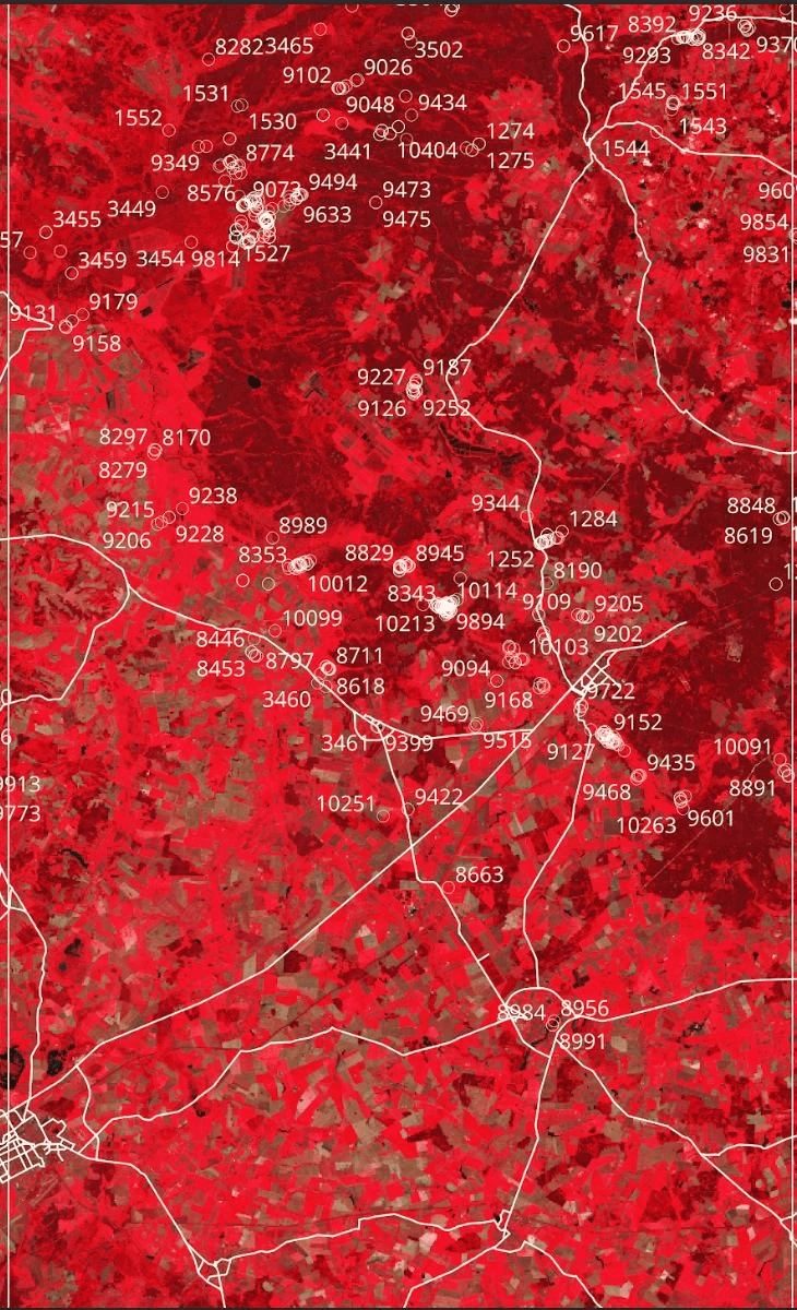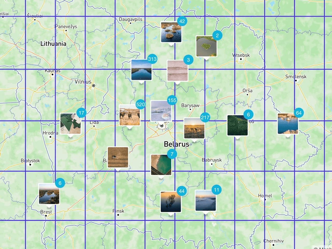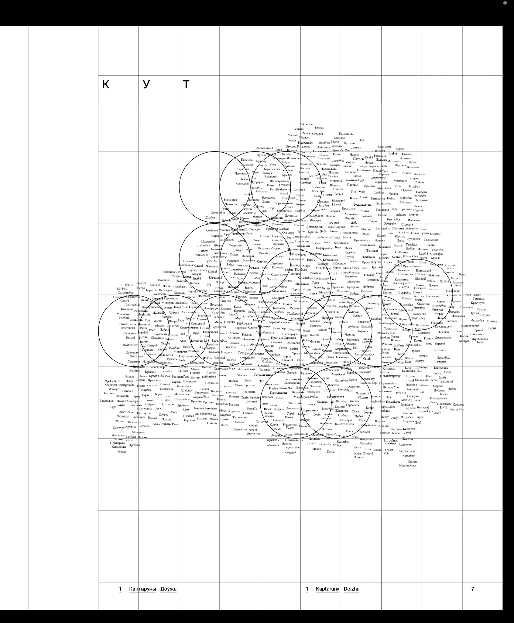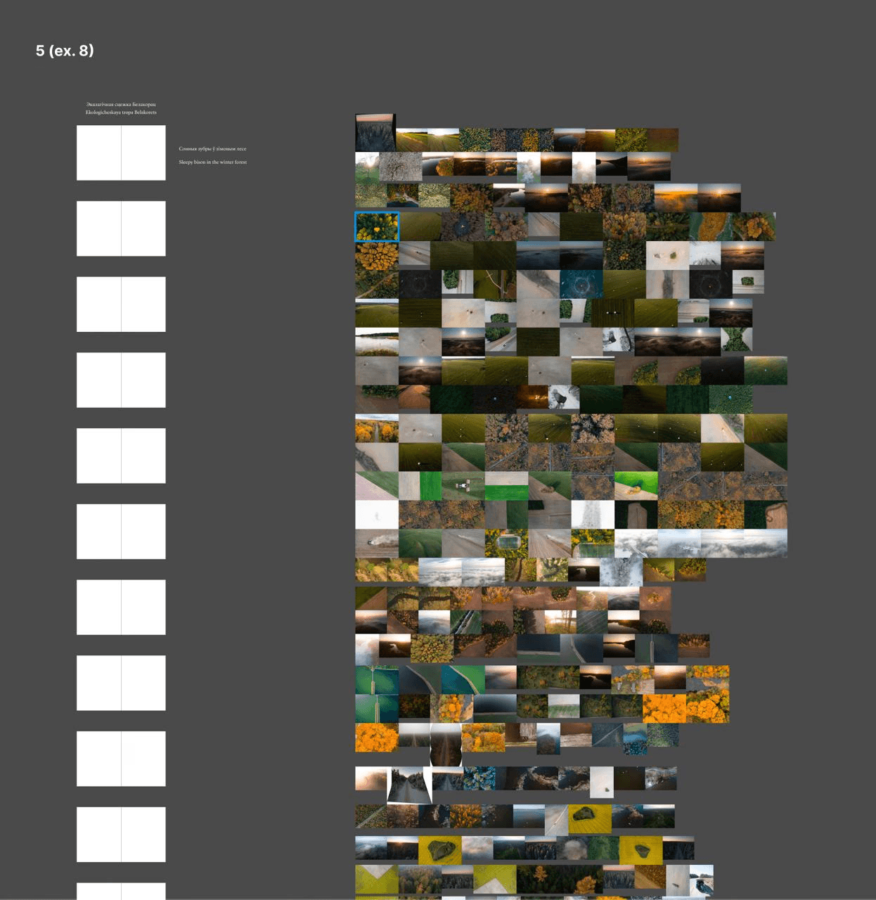 As we collected more and more photographs, it became clear that most of the photos were not related to any kind of settlement at all. More often than not, the photos were not taken in a village or a town but in a forest or some place near a river. The idea to use a coordinate grid raised. Funnily enough, the idea was first brought up while we were somewhere on the road and I drew it with children’s crayons right on the asphalt: