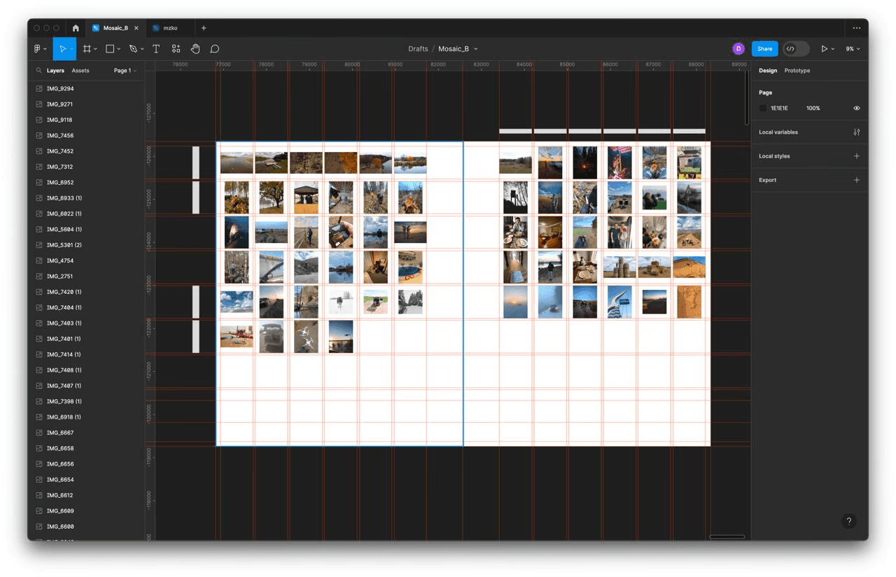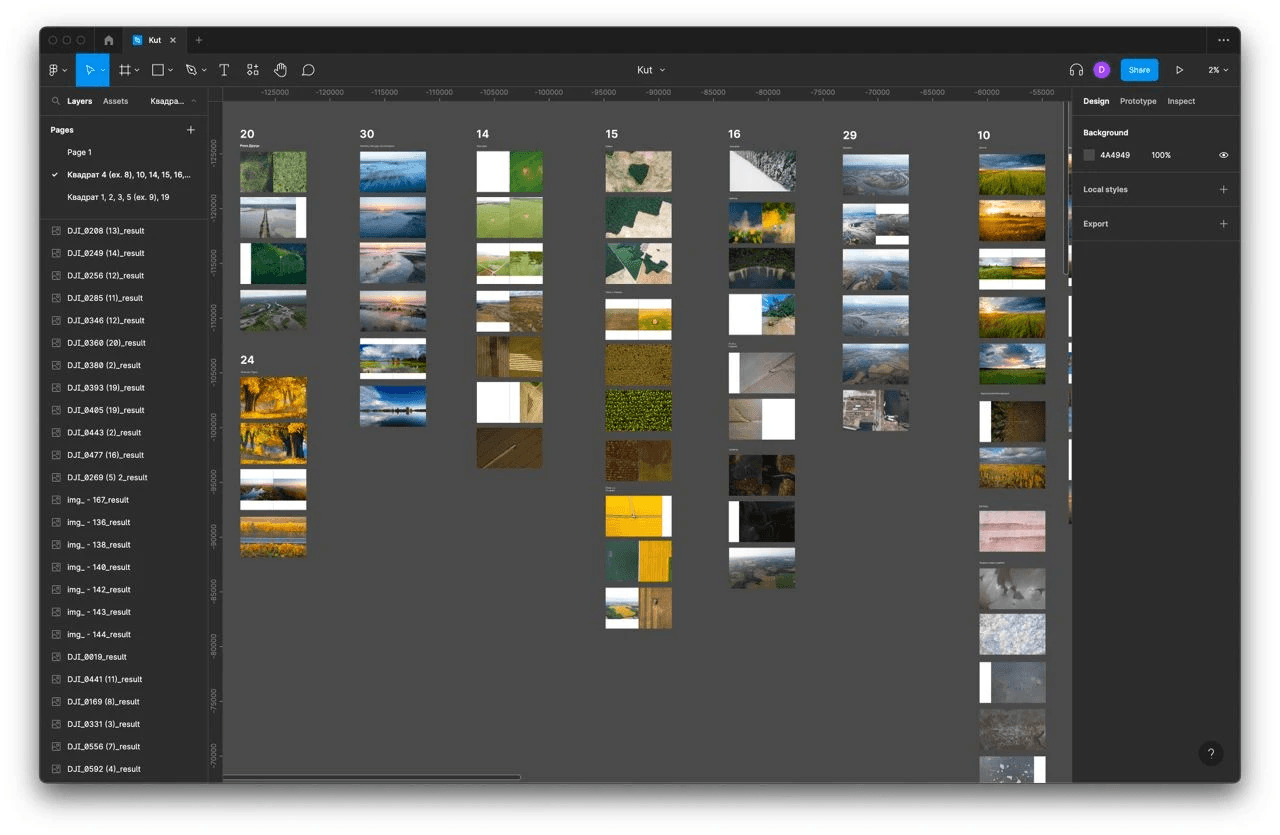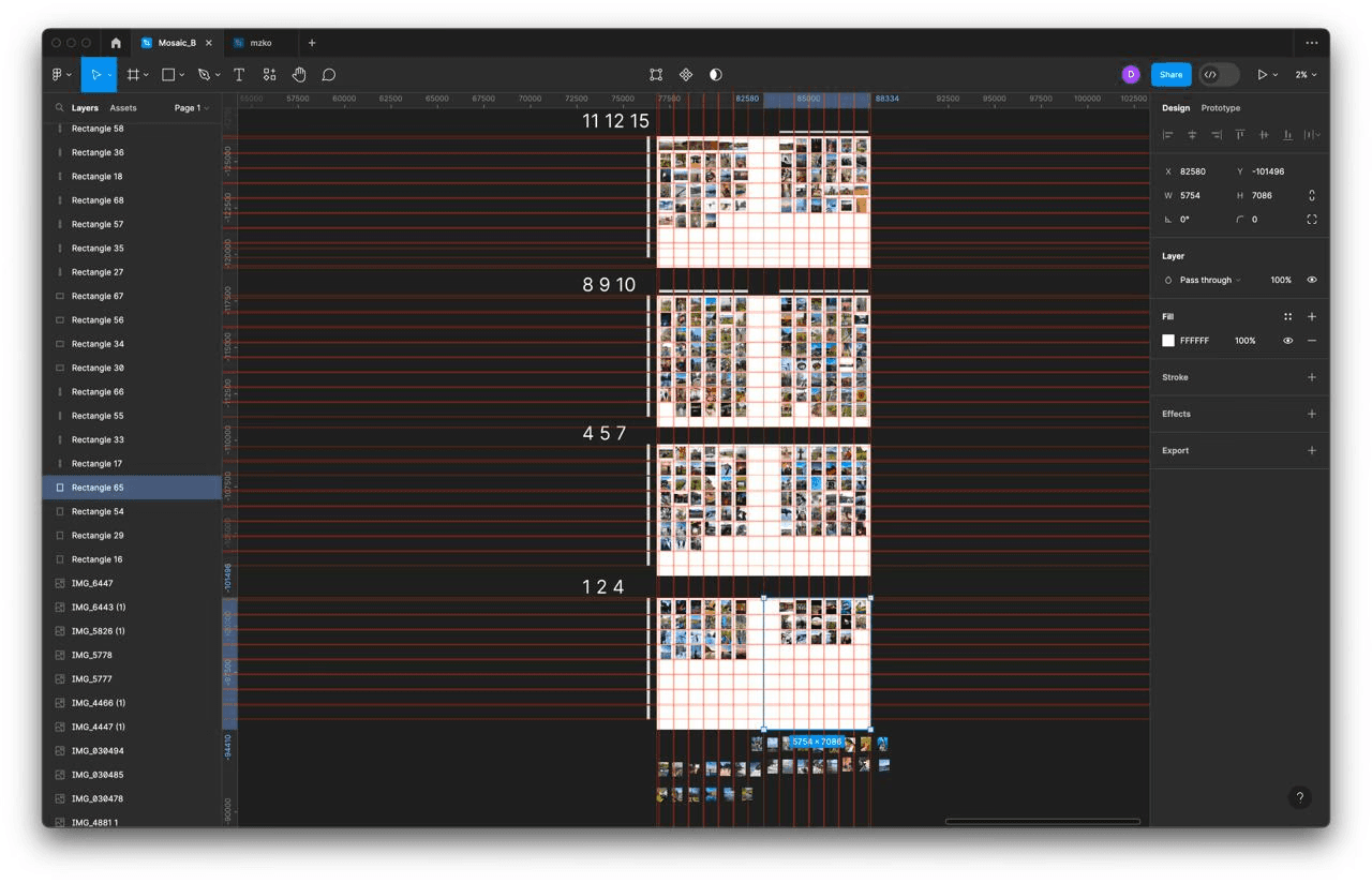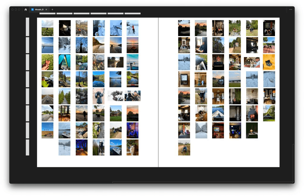 Having said that, we started working in Figma on the structure of the book almost immediately. It was difficult as we had a huge pile of photos that needed to be grouped somehow.