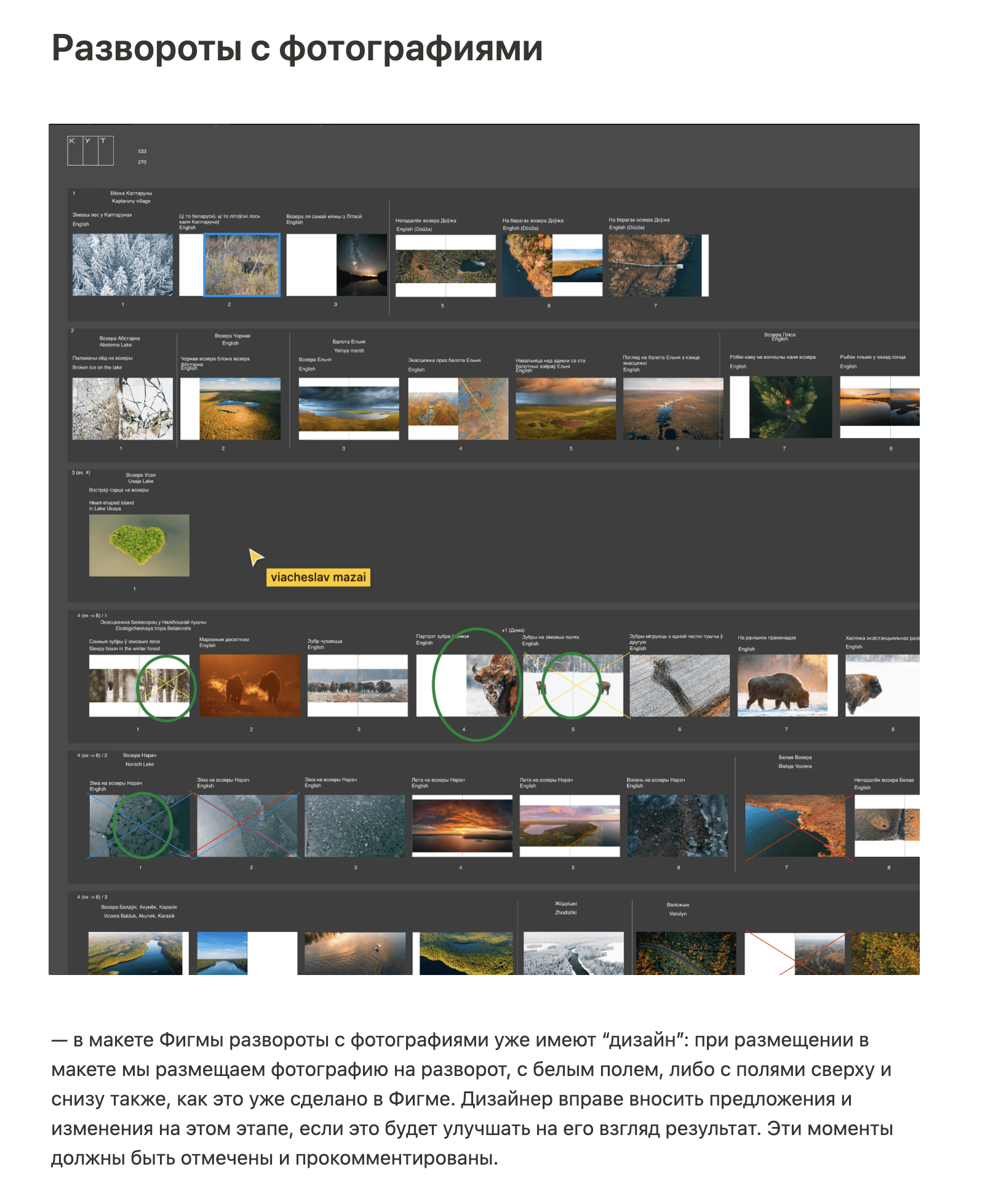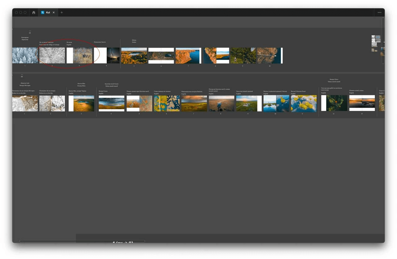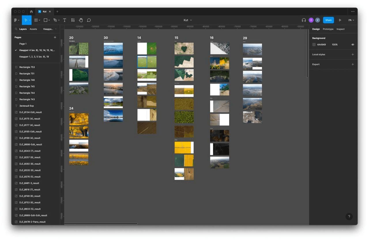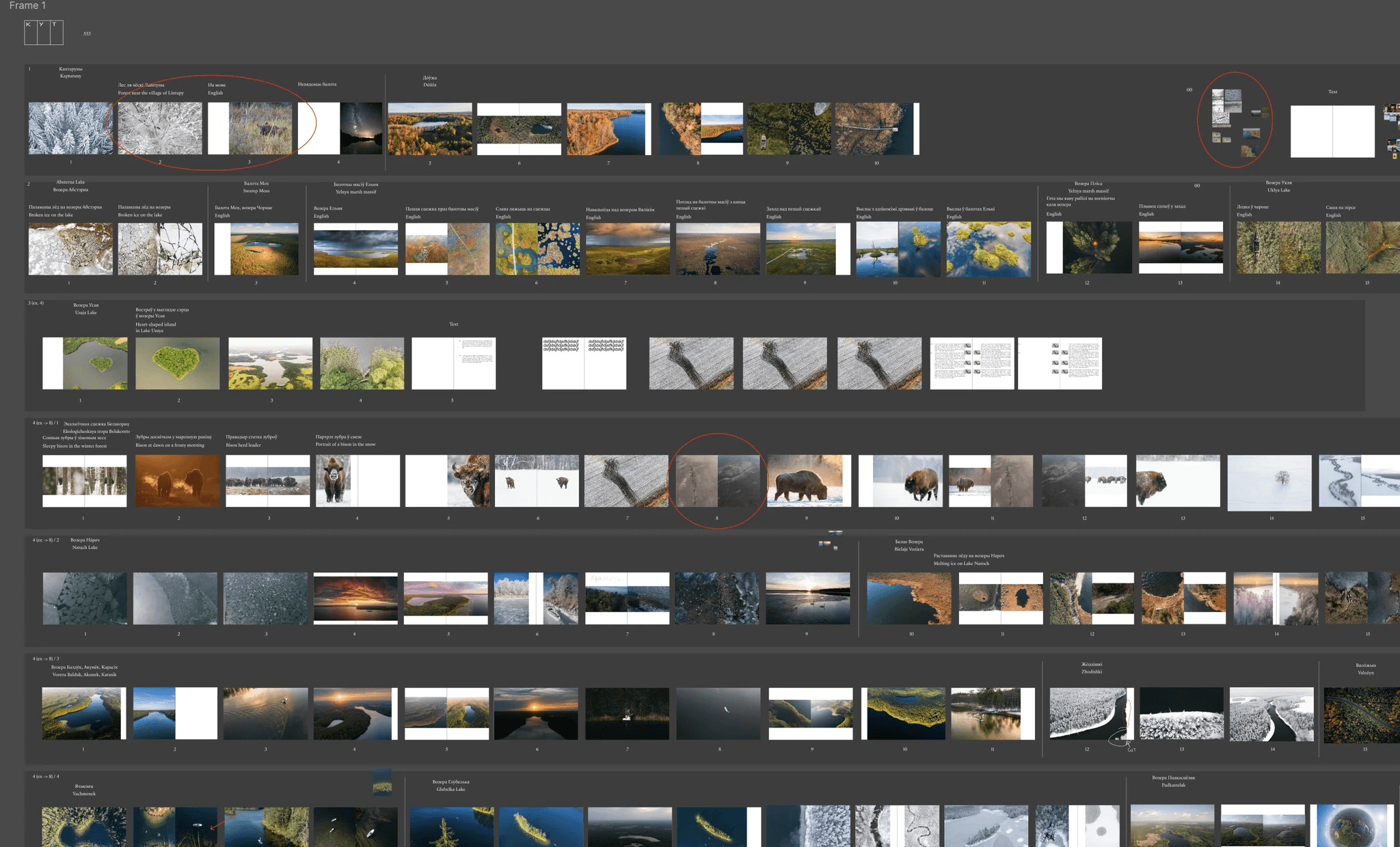 Having said that, we started working in Figma on the structure of the book almost immediately. It was difficult as we had a huge pile of photos that needed to be grouped somehow.