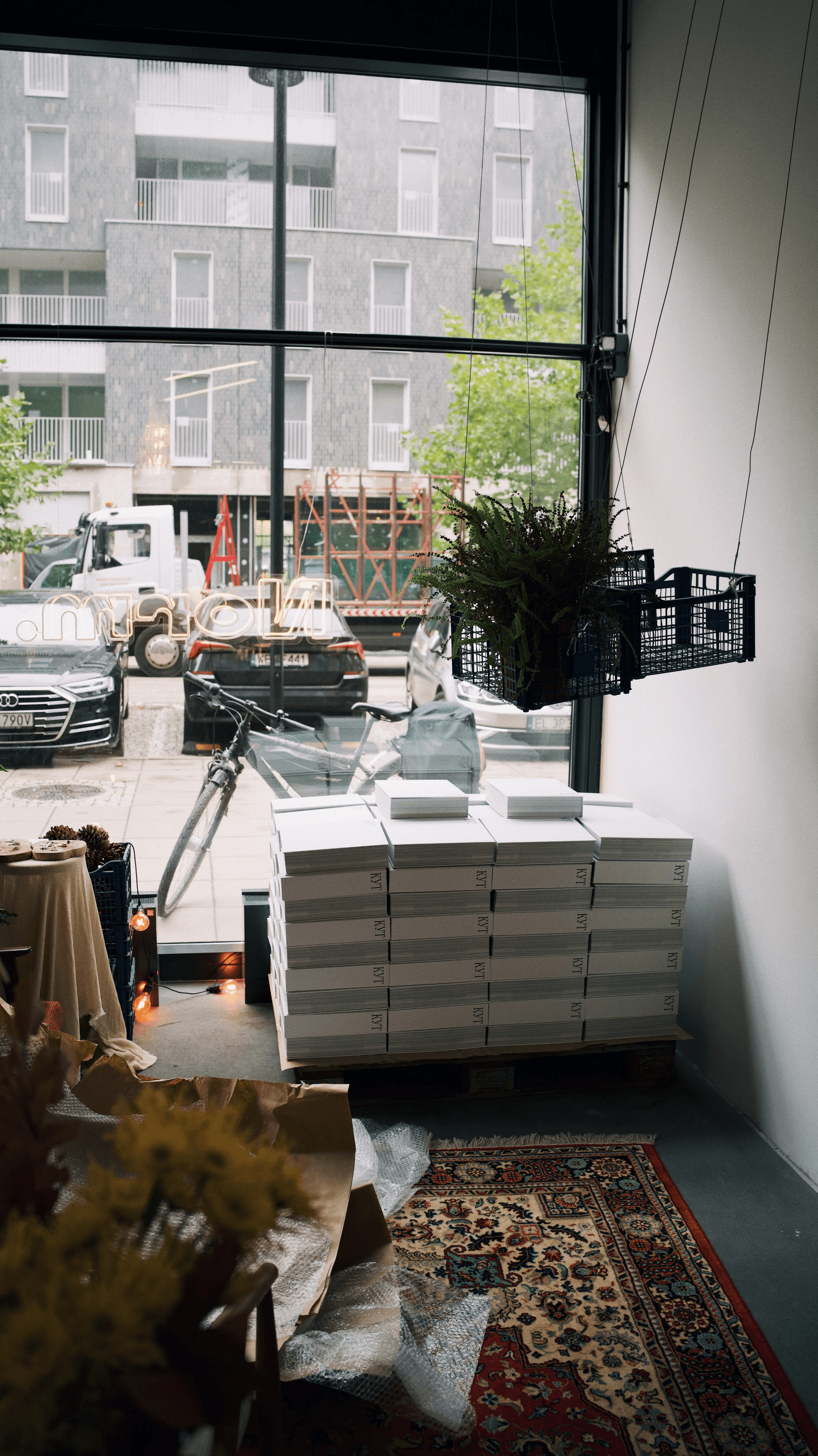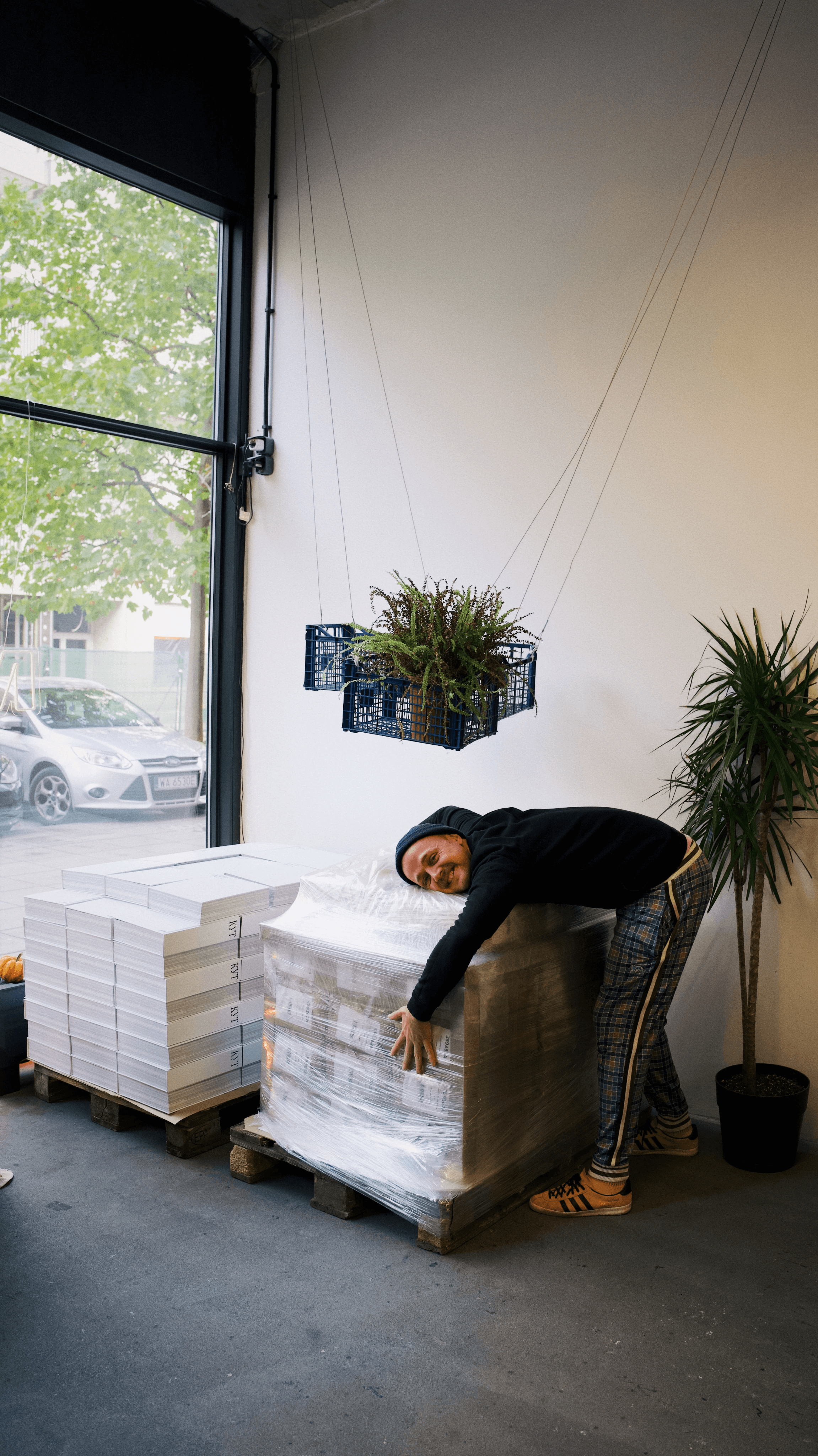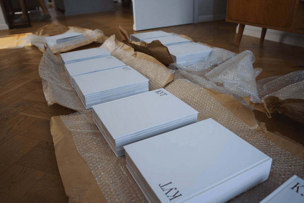 One pallet with our books weighs 415 kg (one hundred books). The first two pallets were brought to Warsaw to our friends at the Norm studio. Our friends helped us to organise the distribution of the books to the first customers. We tried our best to hand out the first books in person.