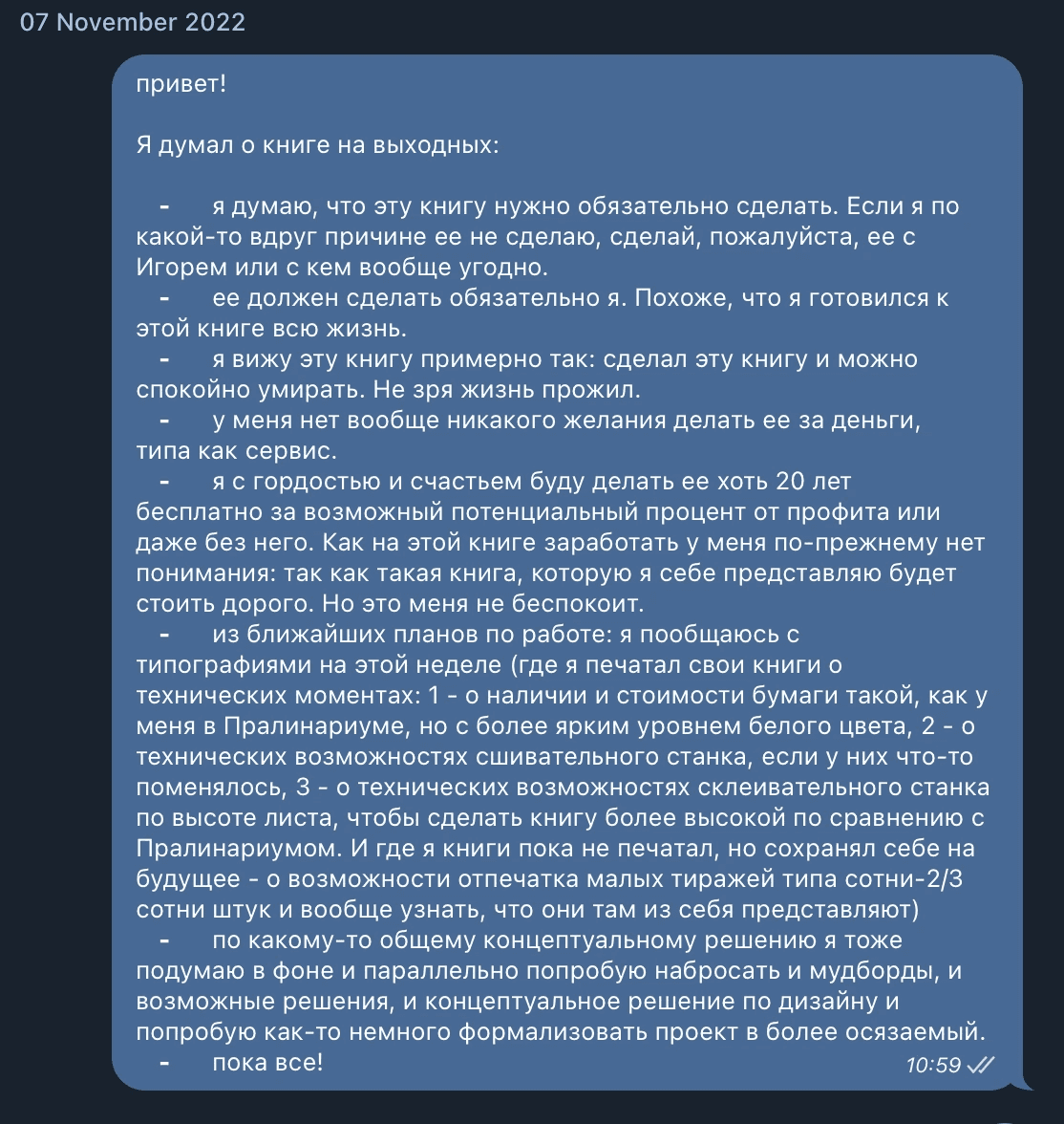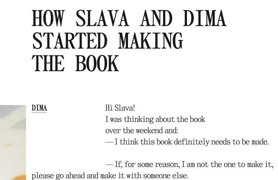 Work on the book began when I met one of the authors of the book, Slava (his Instagram). We spoke for the first time on the 14th of October 2022.