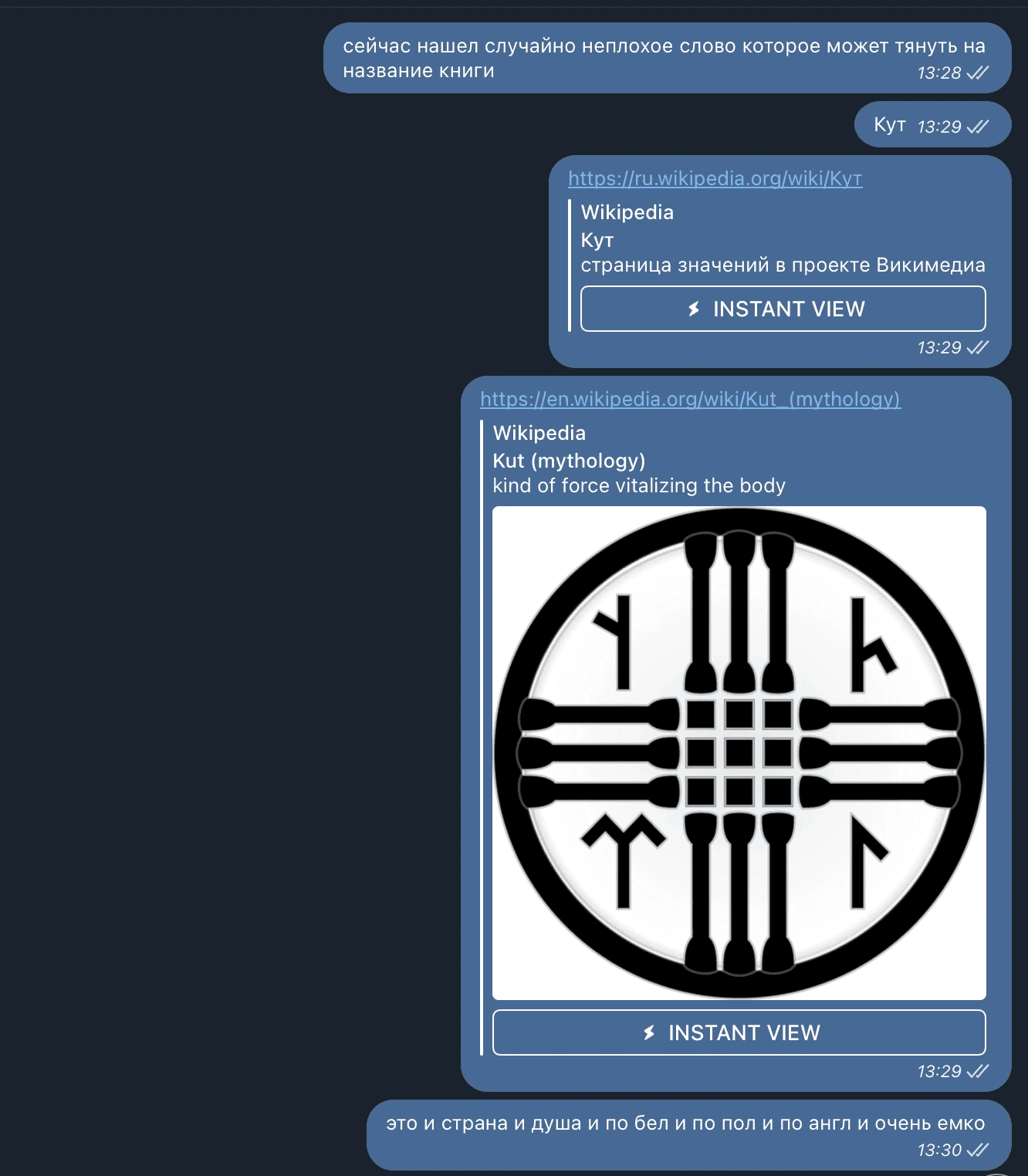 A screenshot of a message from Dima with the book title