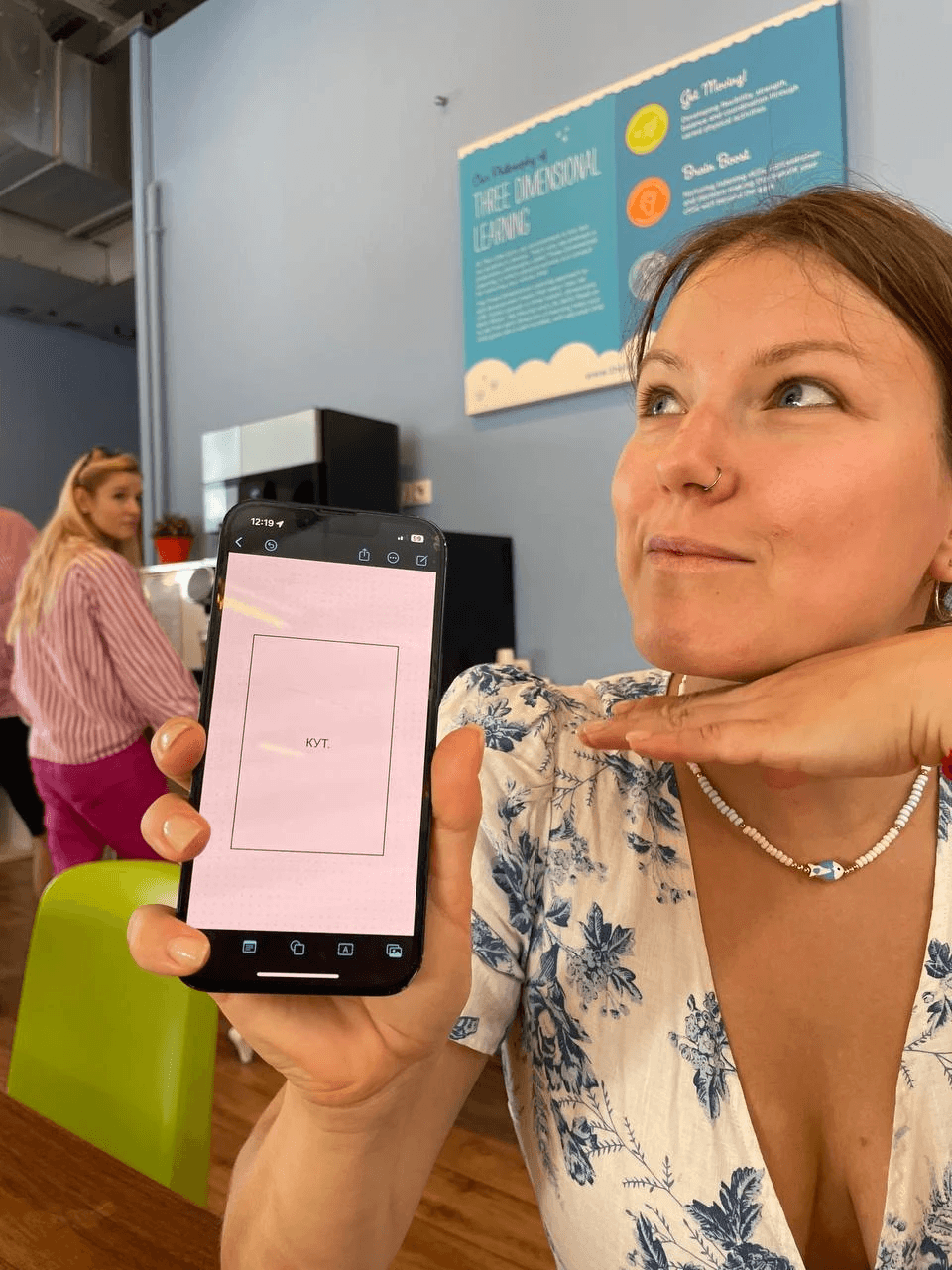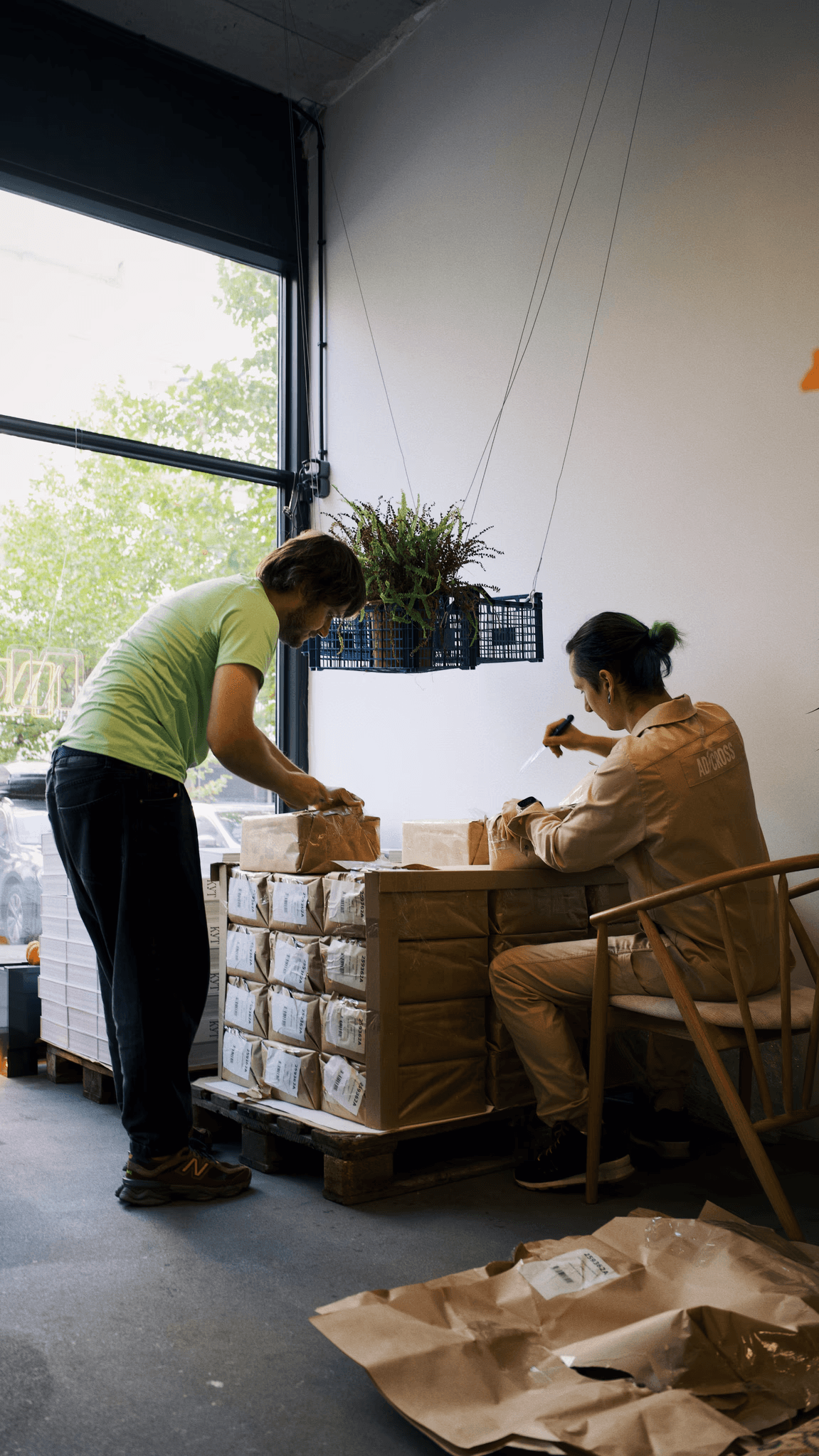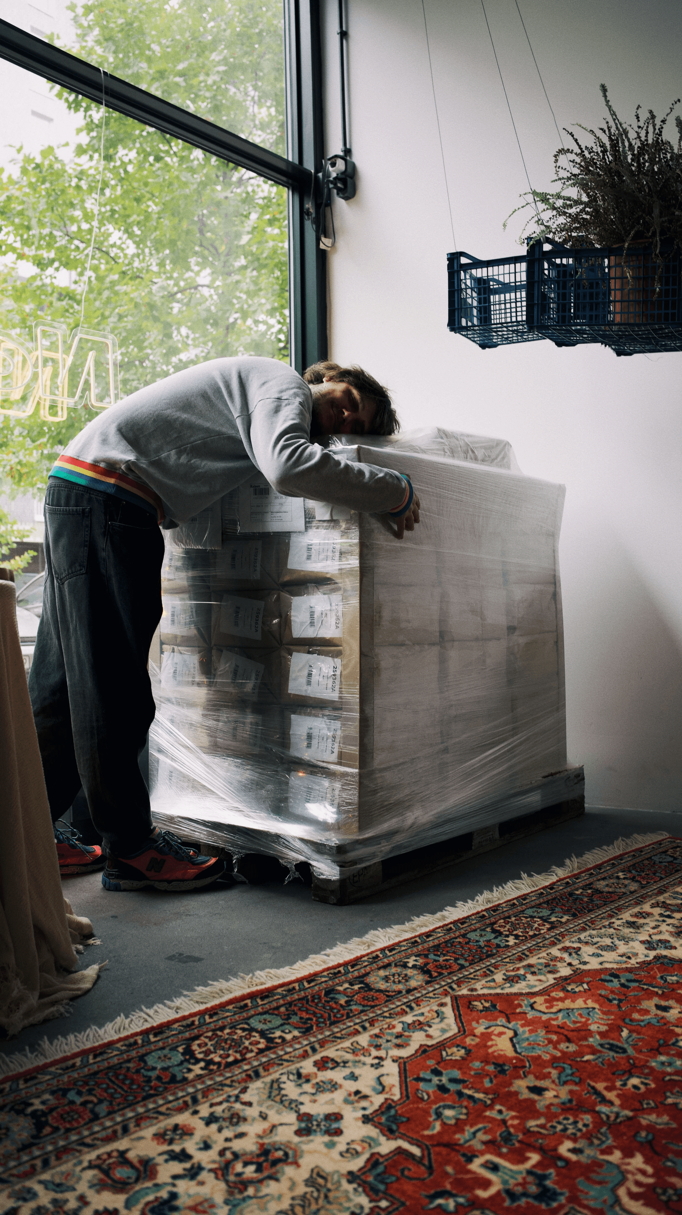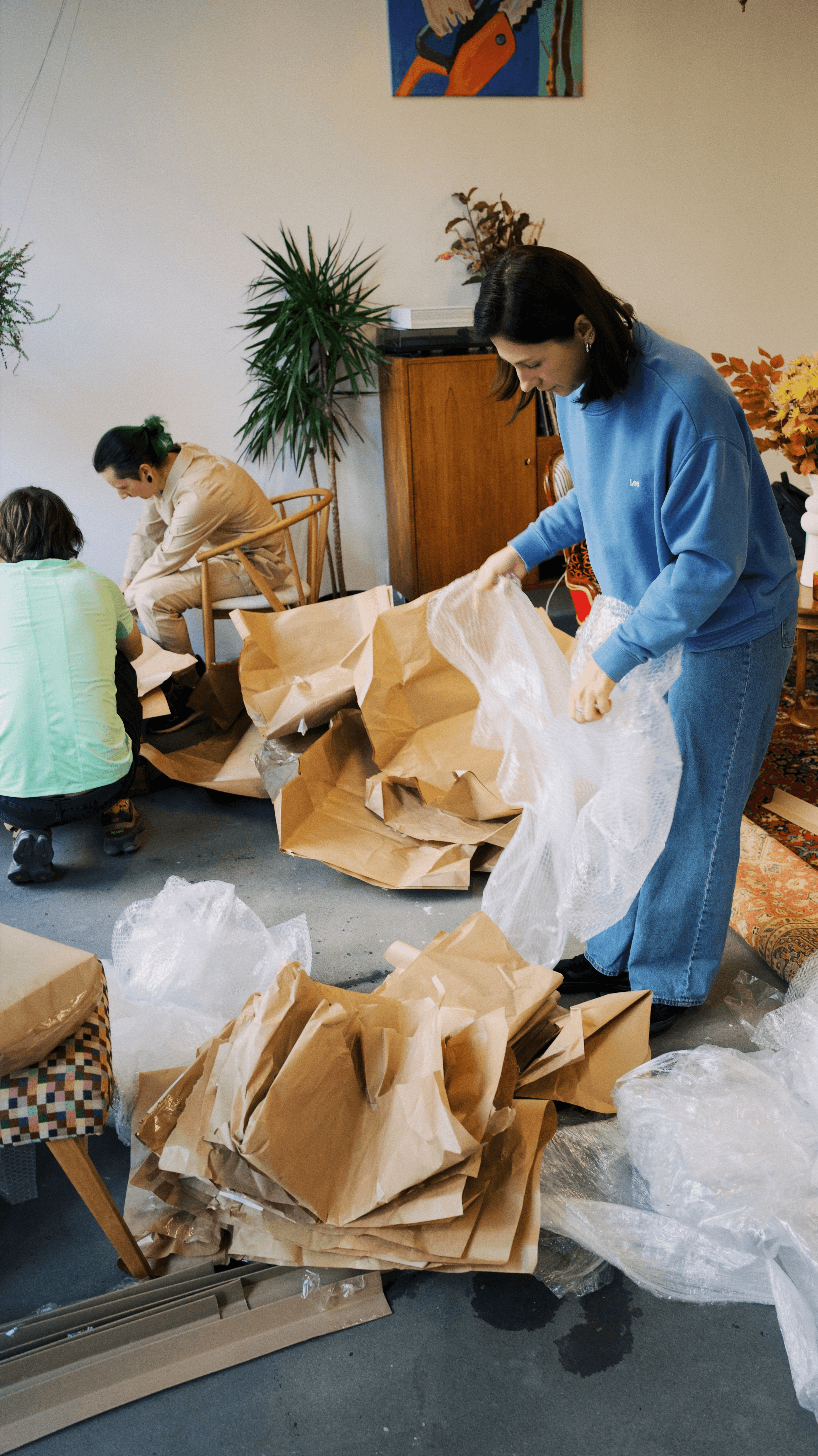 Nastia, the owner of Norm Studio in Warsaw, helps to unpack
