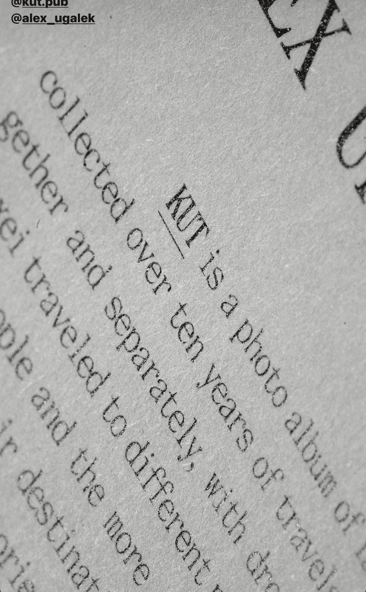 Slava wanted to make the book with the friend with whom he had travelled and taken photographs. He invited him to participate in the project: that is how I met the second author of the book — Alex (his Instagram).