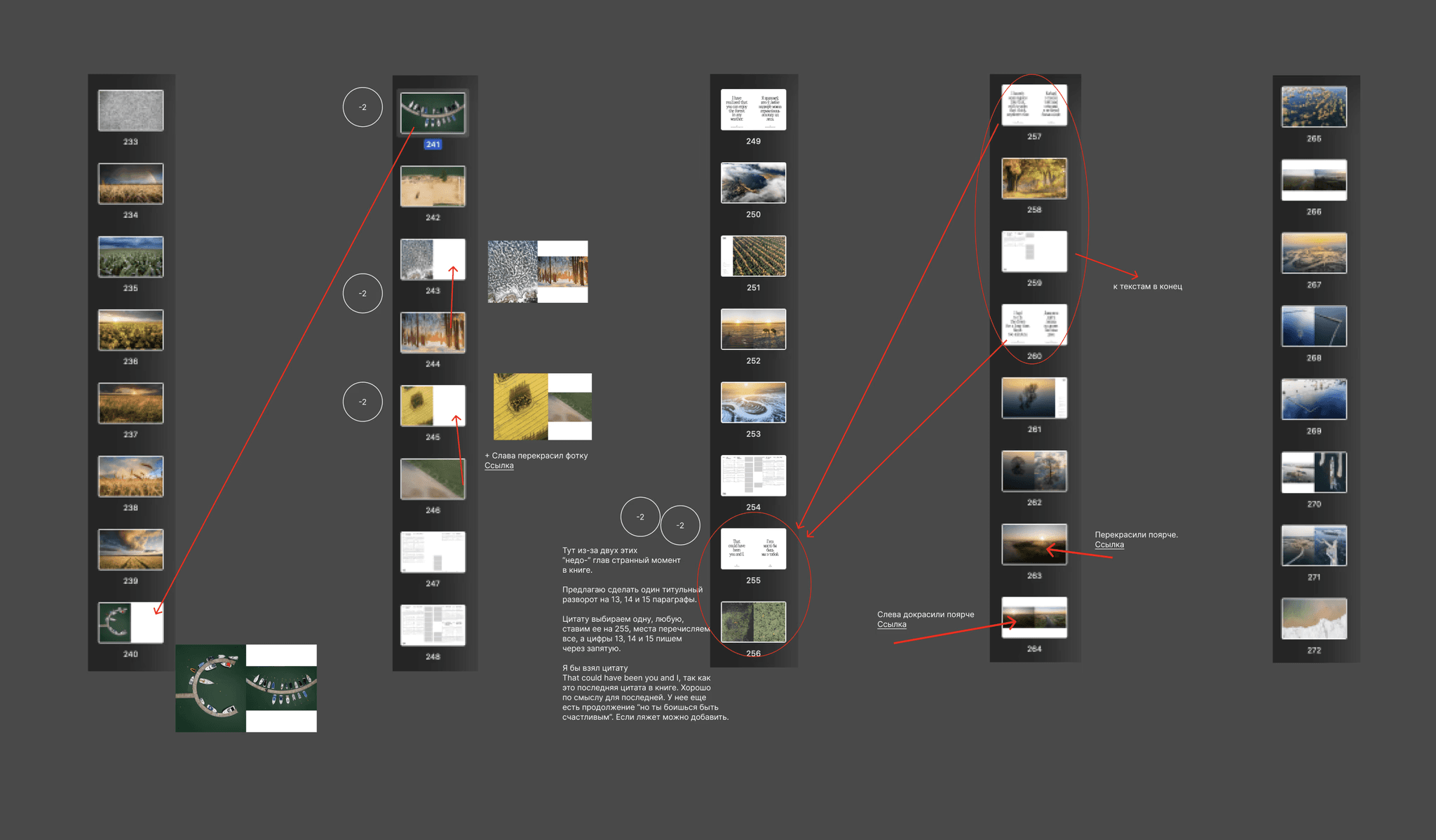 We already had a complete layout of about 550 pages, the photos were grouped into chapters, the quotes and the text were laid out properly.